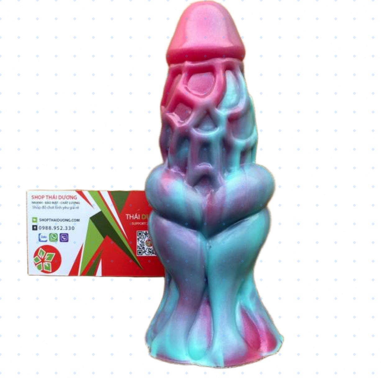 Kích thước tổng thể: dài 18cm, đường kính đầu dương vật 4cm, đường kính thân 7cm.