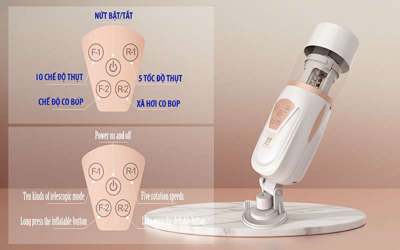 Chức năng: Tích hợp 10 chế độ thụt và 5 chế độ co bóp, có thể điều chỉnh linh hoạt phù hợp với cấp độ khoái cảm.